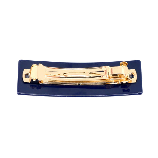 Navy Rectangle Barrette Clip with Yellow GO BLUE