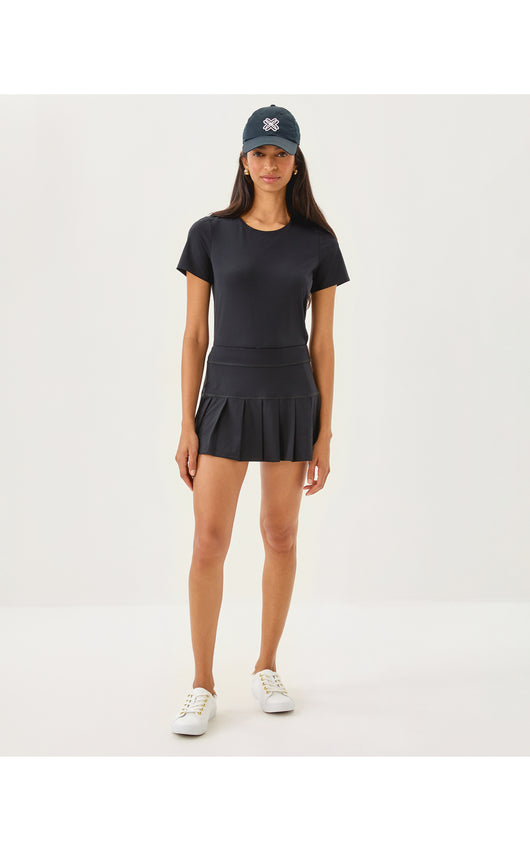 - UPF 50+ Luxletic® active skort with a pleated hem and undershorts with a pocket. Moisture wicking.