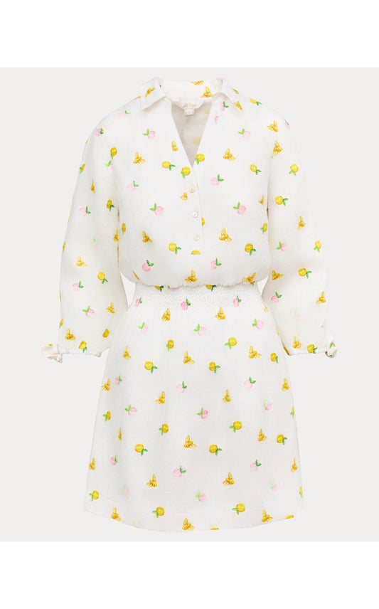 Abralynn Embroidered Linen Shirtdress - Pink Muse Lemon Bee Half Drop