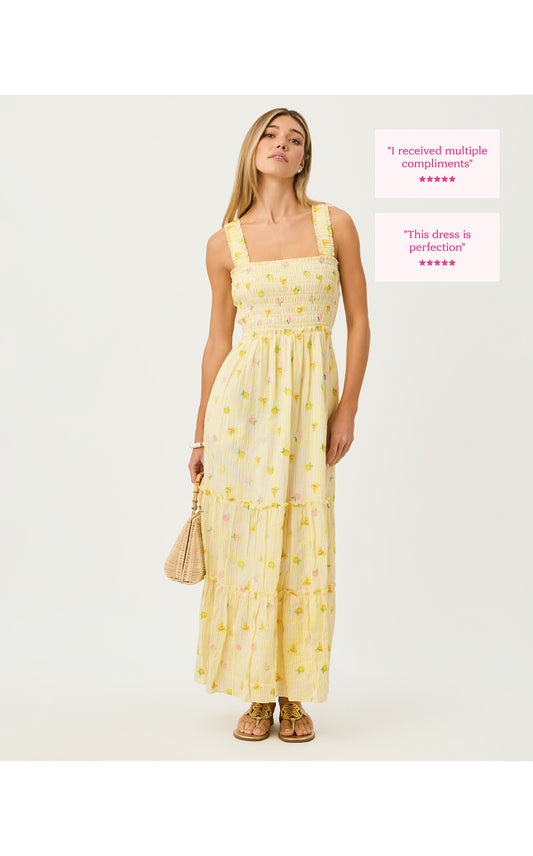 Hadly Smocked Maxi Dress - Estelle Yellow Ltwt Oxford Stripe With Lemon Bee Embroidery