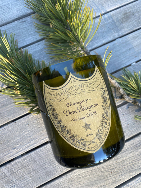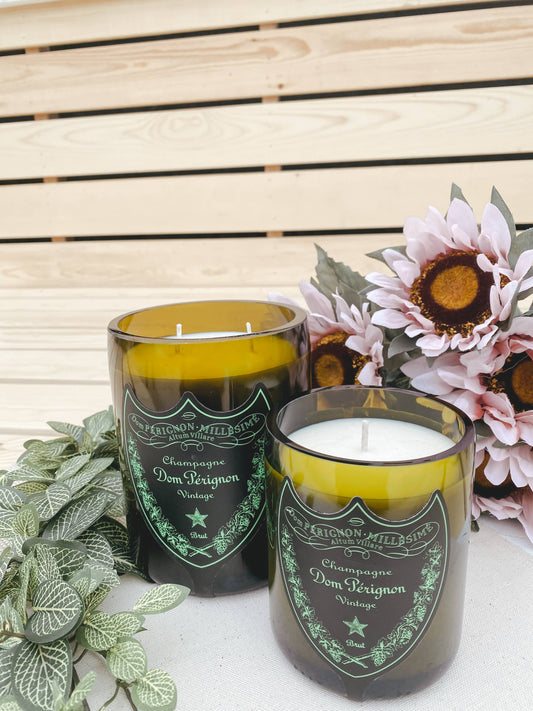 Recycled Dom P Bottle - Vintage Label Candle: Grapefruit/Mango/Vanilla