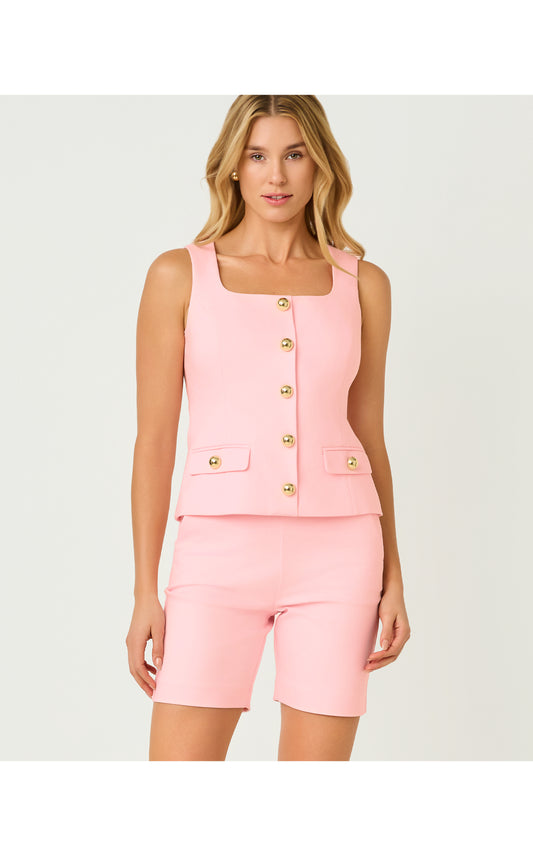 Mialeigh Elbow Sleeve Linen Top - Putting Green X Resort White