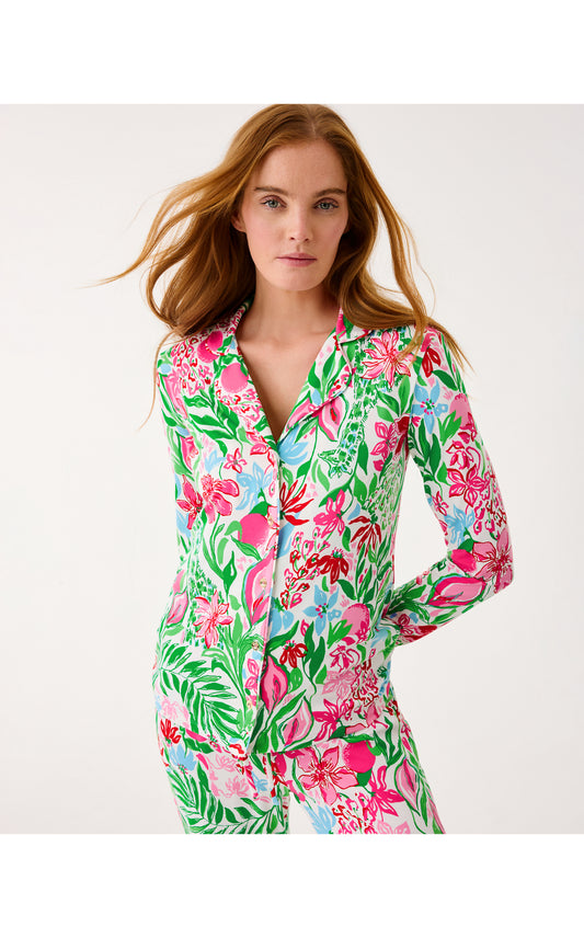 PJ Knit LS Button-Up Top - Multi Glowing Gardens