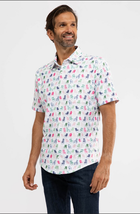 Mens Stuff Volk Stretch Short - Conch Shell Pink Derby Ditsy Embroidery