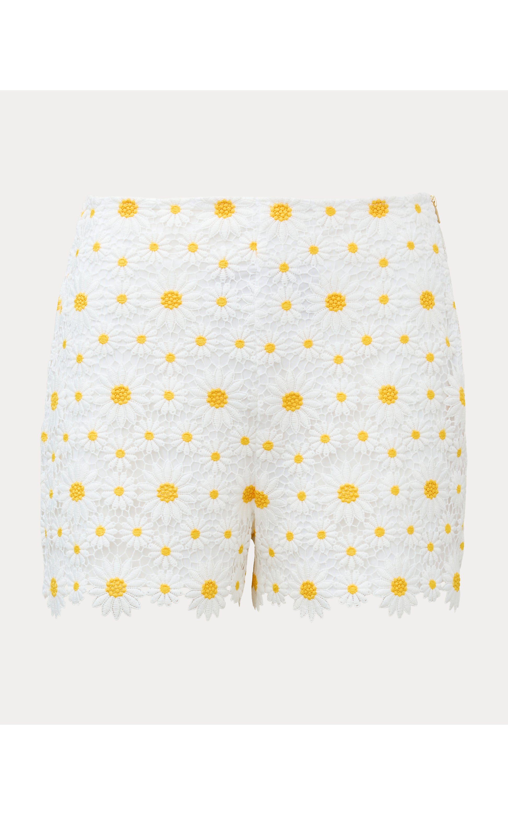 - High rise, straight fit, lace short with a side zipper.