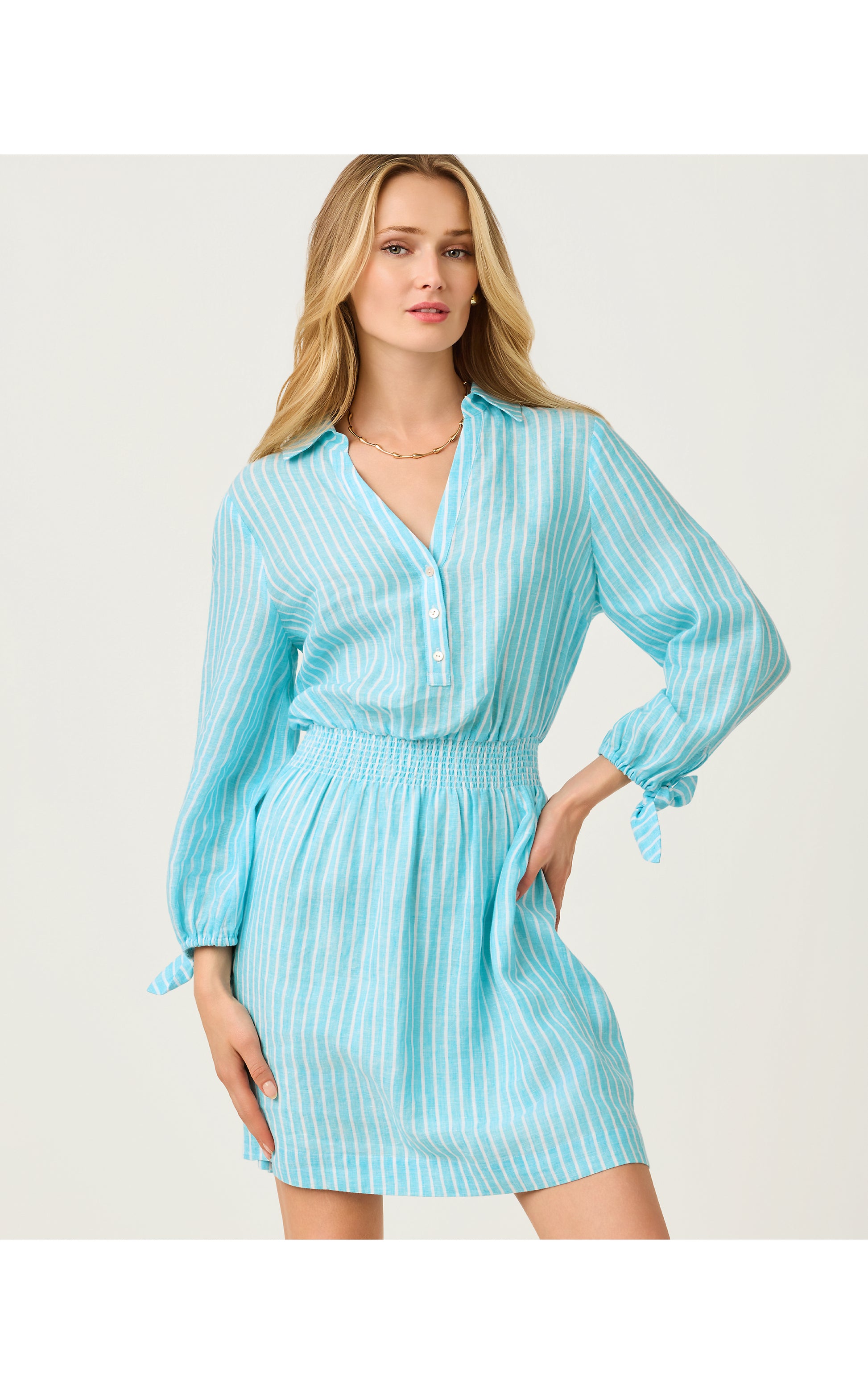 Abralynn Linen Shirtdress - Capri Blue Saint Tropez Stripe