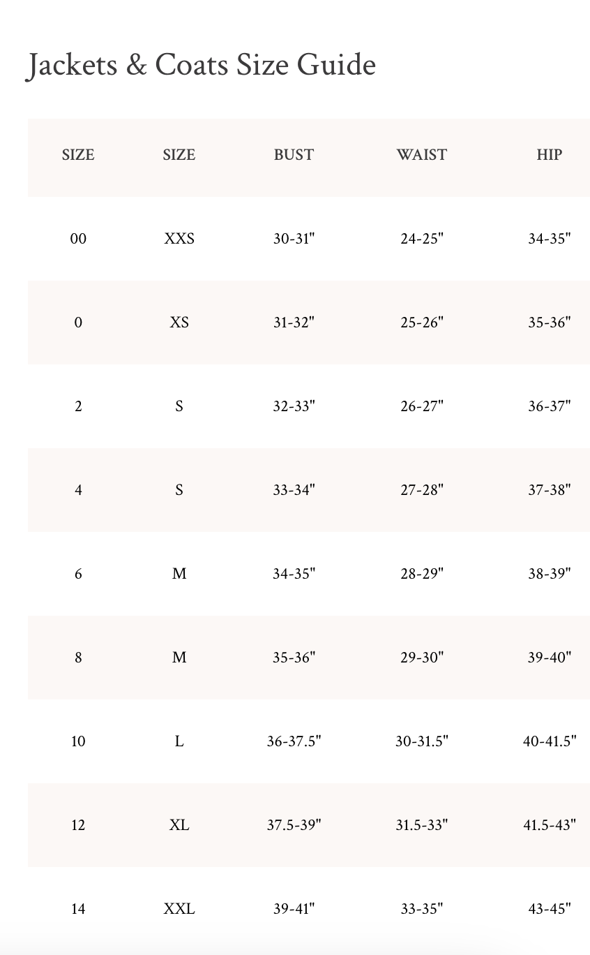 - Bust: 42 1/2"