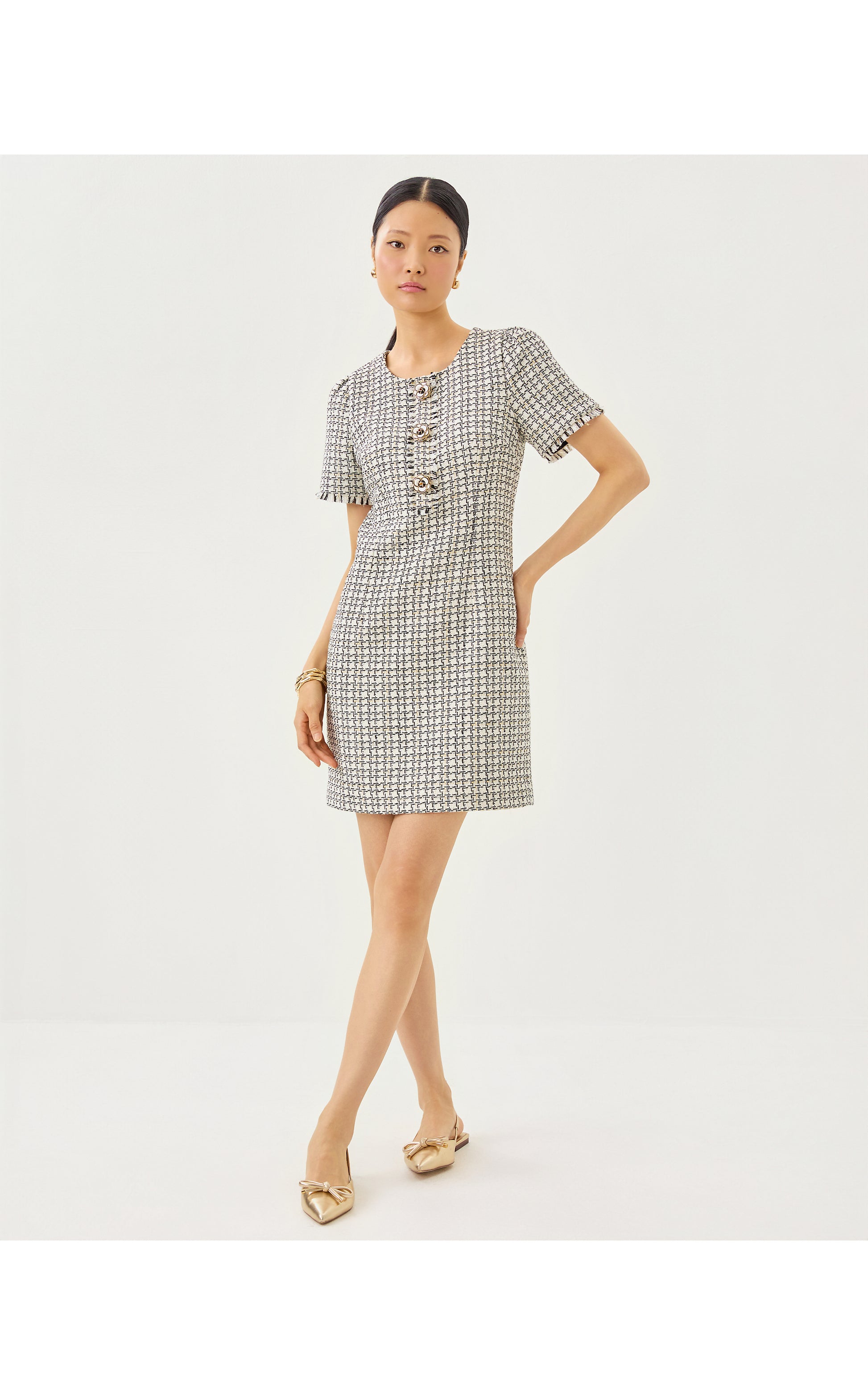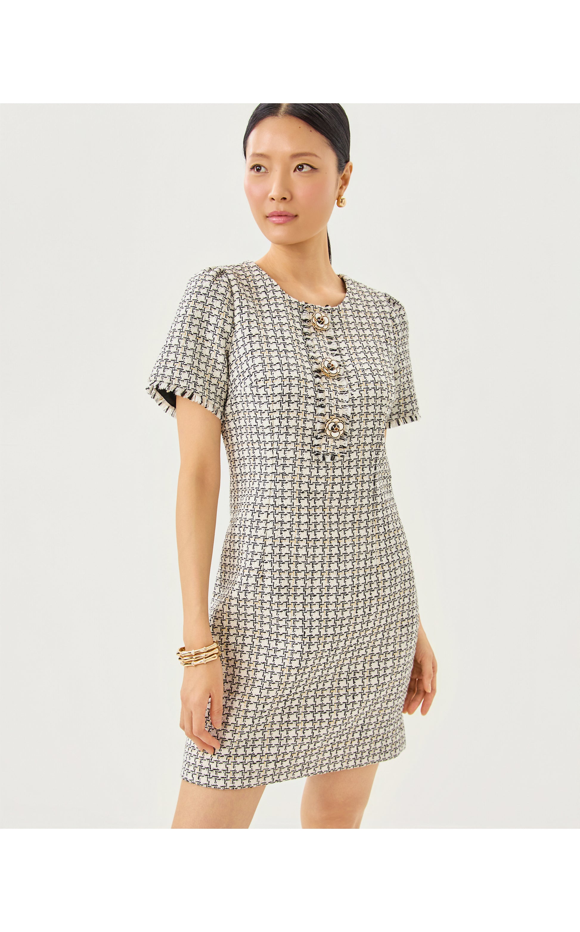Brenda Boucle Dress - Coconut Lurex Houndstooth Boucle