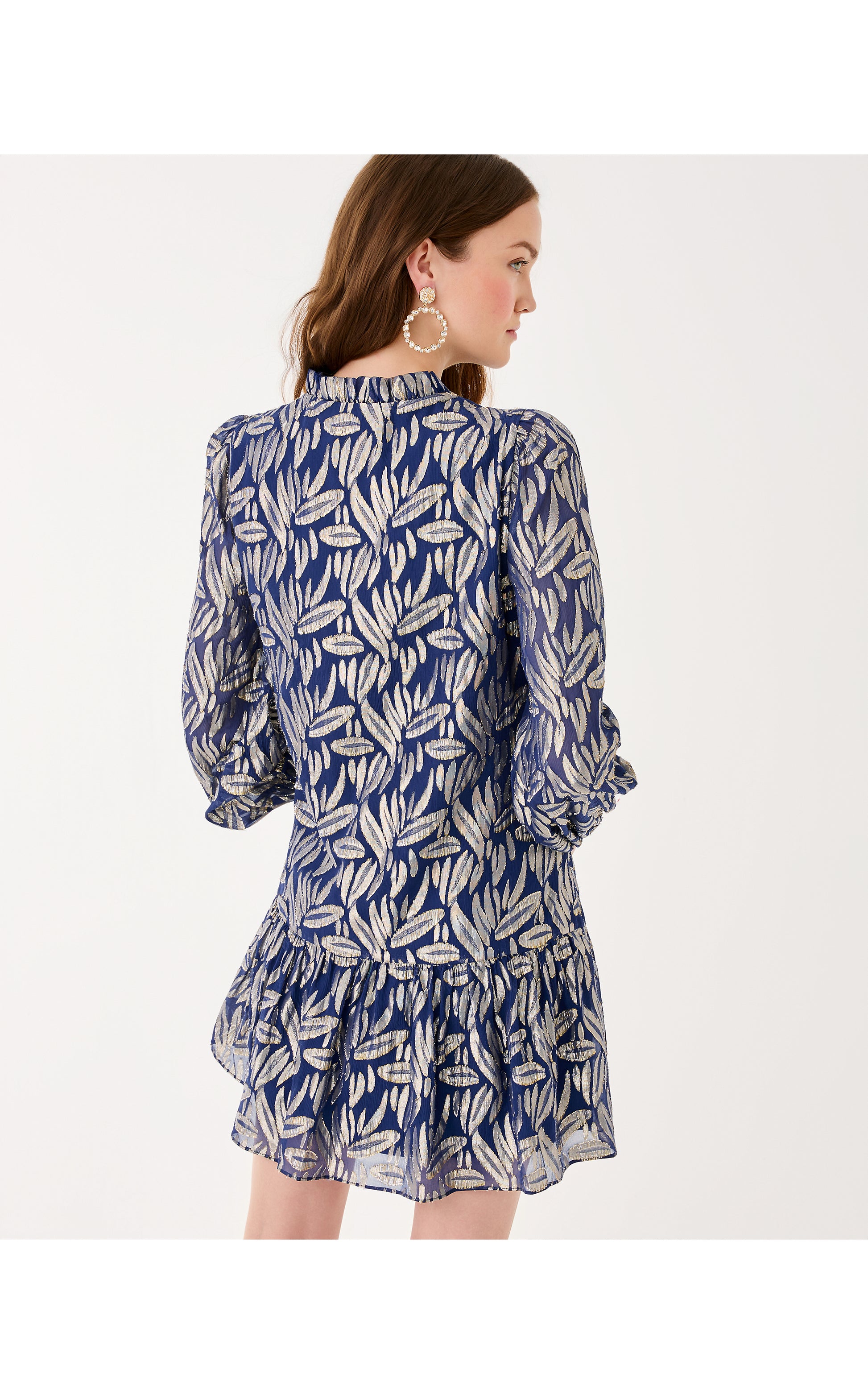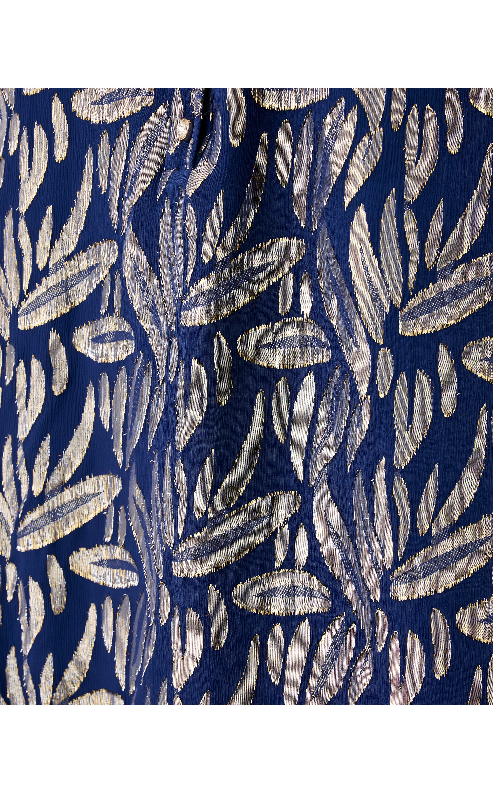 Evaline Silk Dress - Low Tide Navy Leafy Babe Metallic Silk Clip