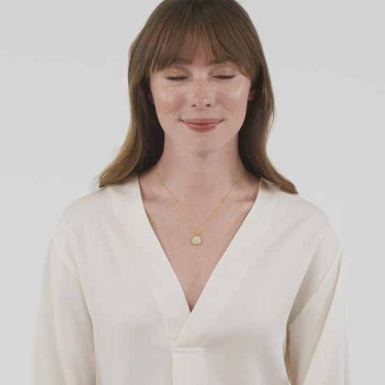 One necklace, two ways to wear it—one side features a glittering gemstone, while the reverse side features a fleur-de-lis intaglio.