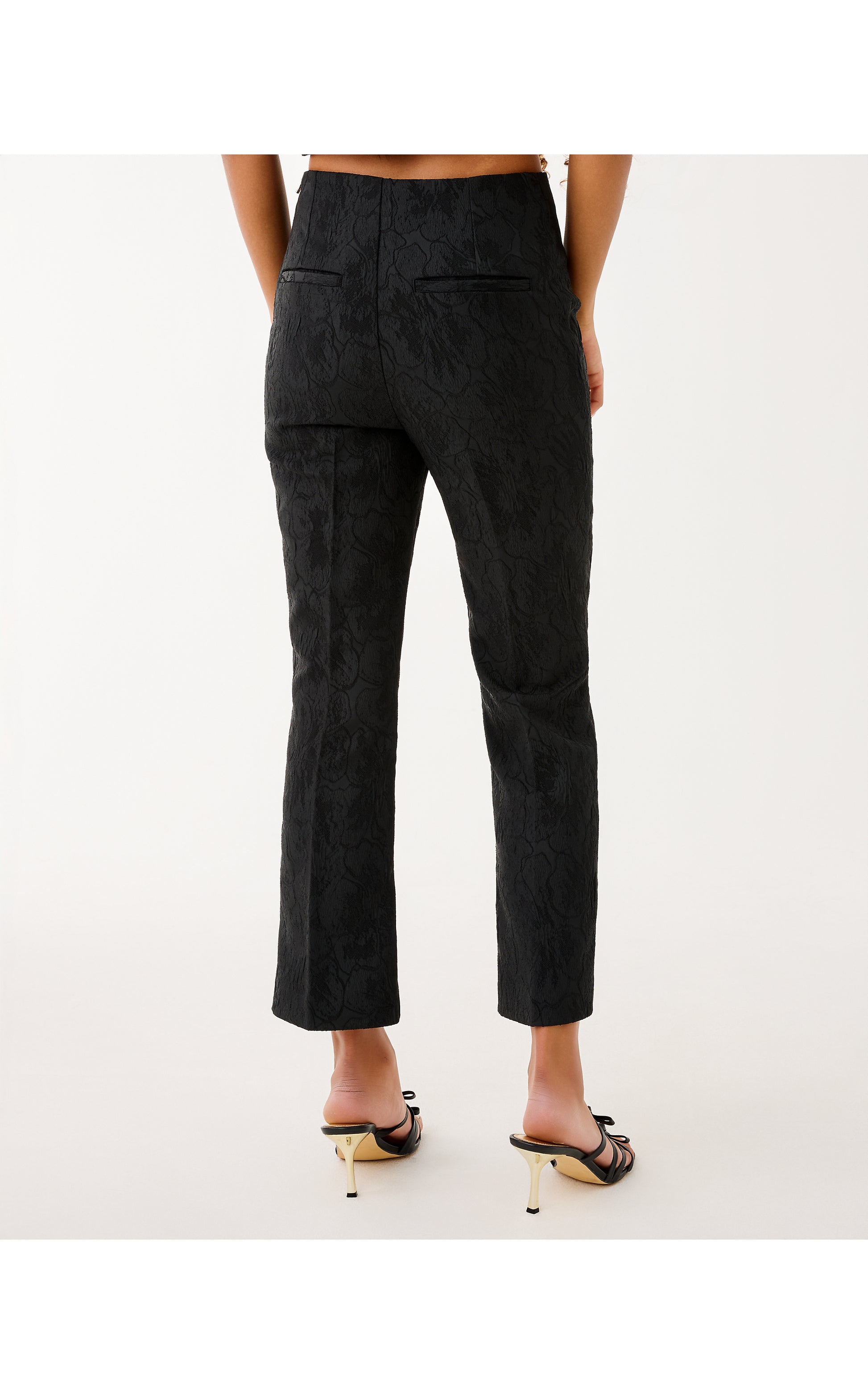 27" Jarrae Jacquard High Rise Crop Flare Pant - Noir Exploded Flower Stretch Jacquard