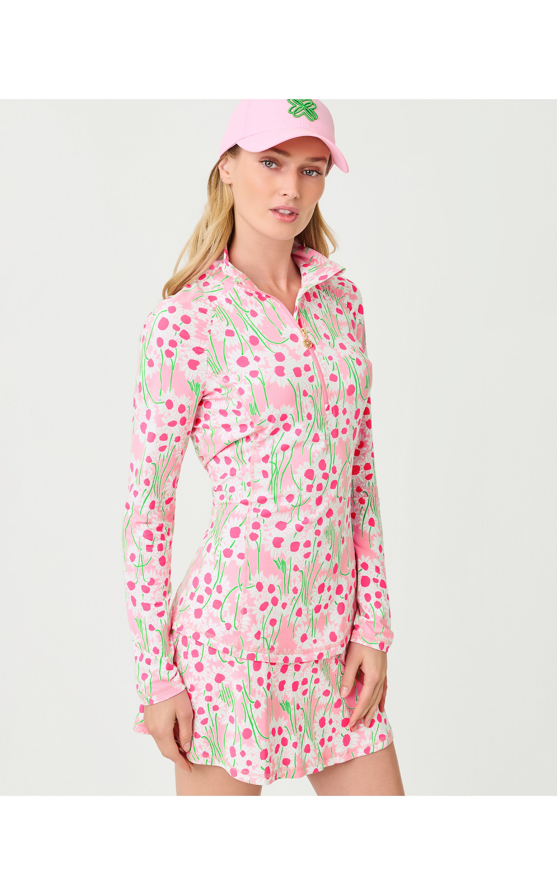 UPF50+ Justine Half Zip - Conch Shell Pink Lil Sunny Daisies