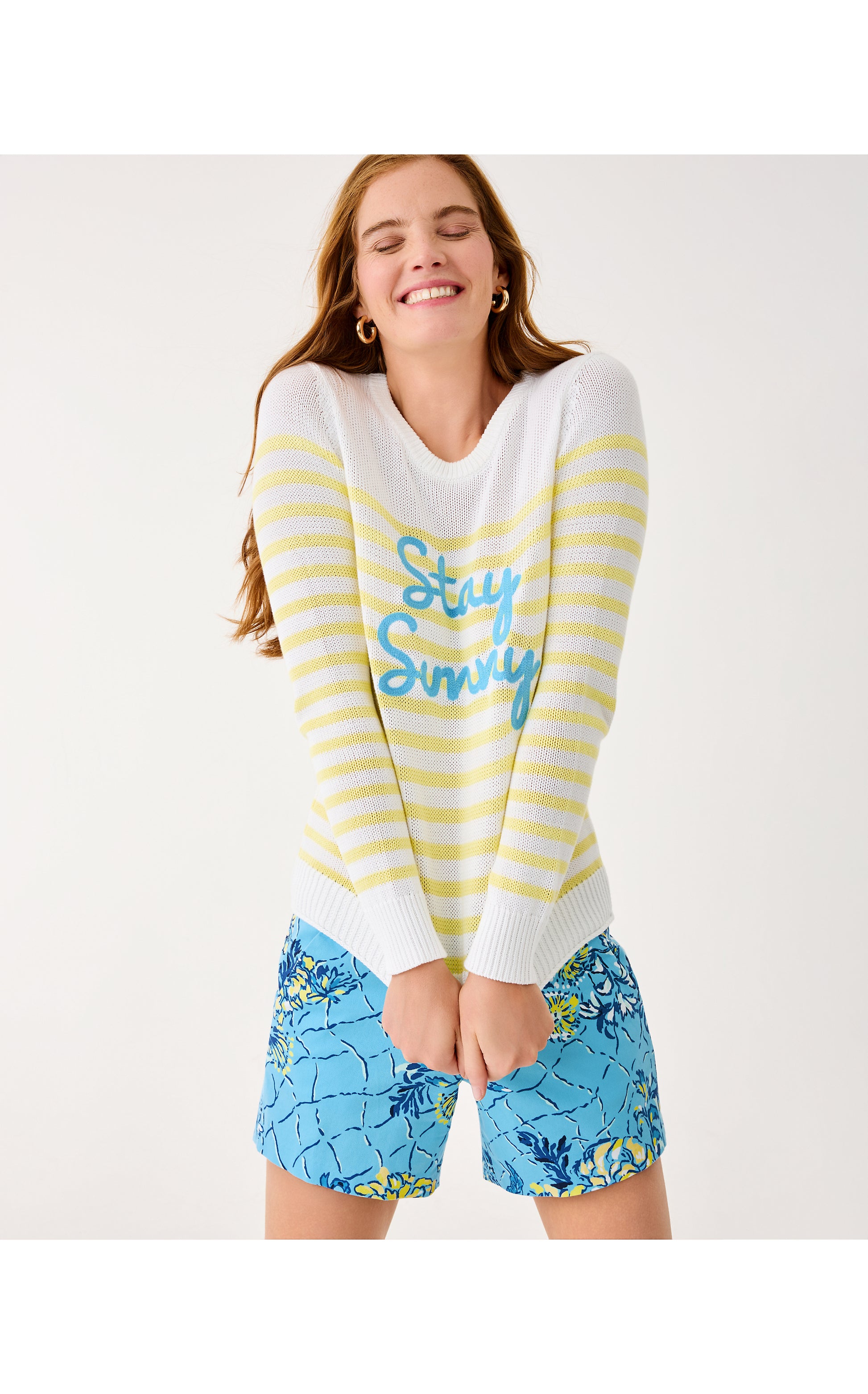 Kelsa Sweater - Resort White Stay Sunny Embroidery