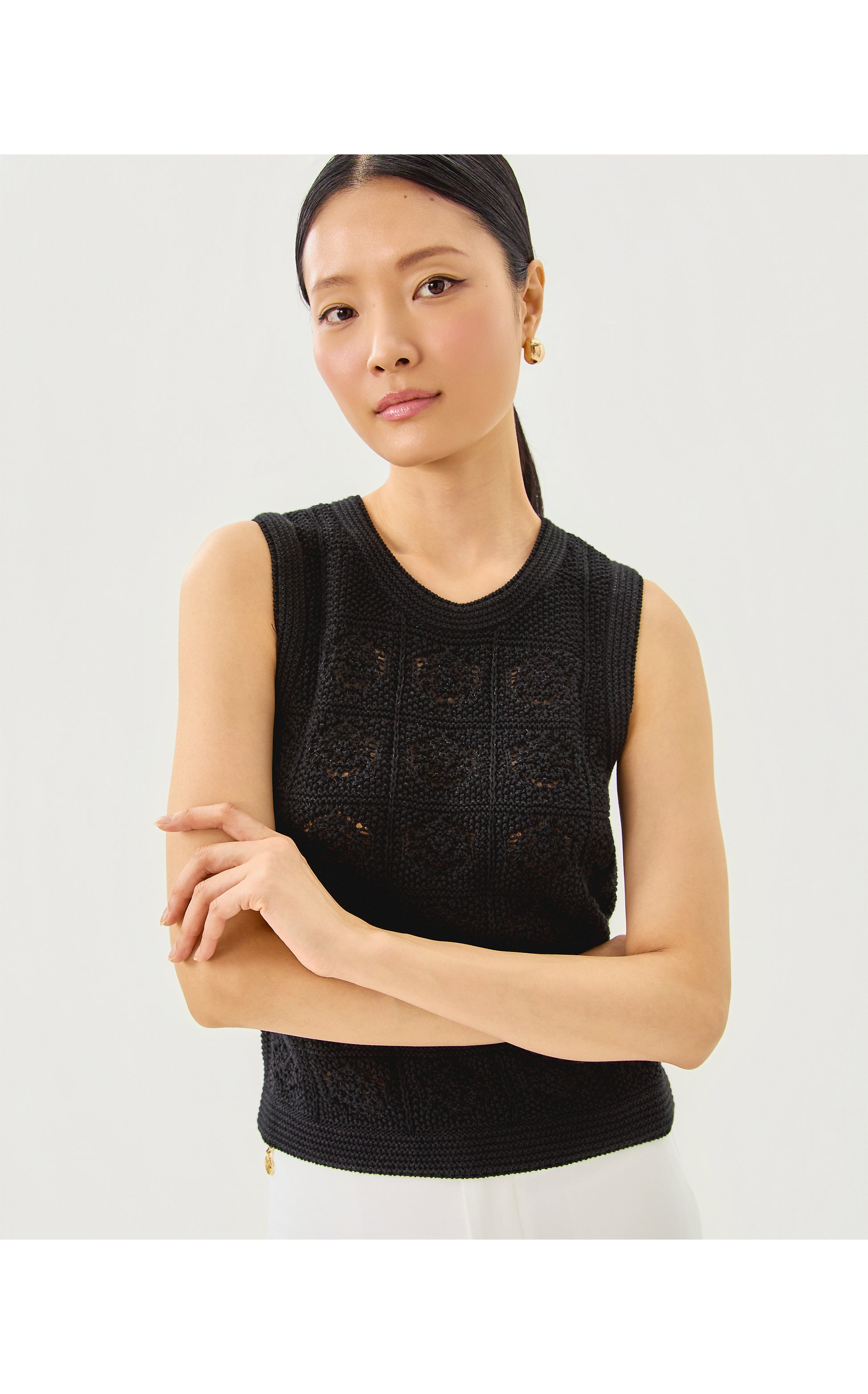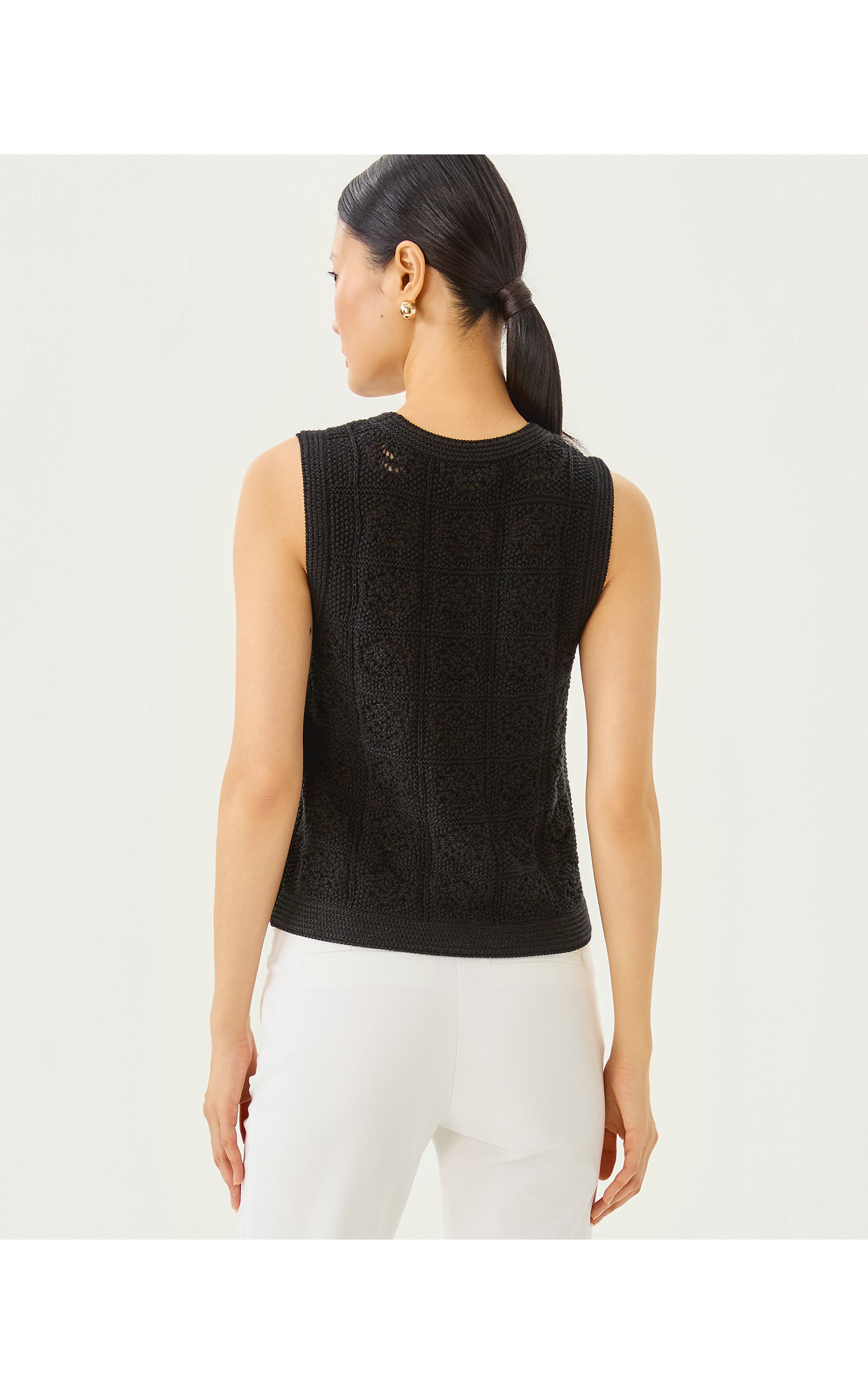 21.5" Sl Crewneck Shell With Allover Crochet Like Stitch