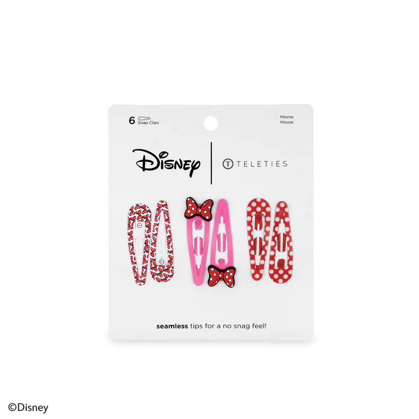 The Disney | TELETIES Minnie Mouse Snap Hair Clips are lightweight essentials designed to hold small sections of hair comfortably in place. Perfect for fine hair, kids styles, bangs, and face framing pieces, these snap clips provide gentle, secure hold without snagging or pulling.