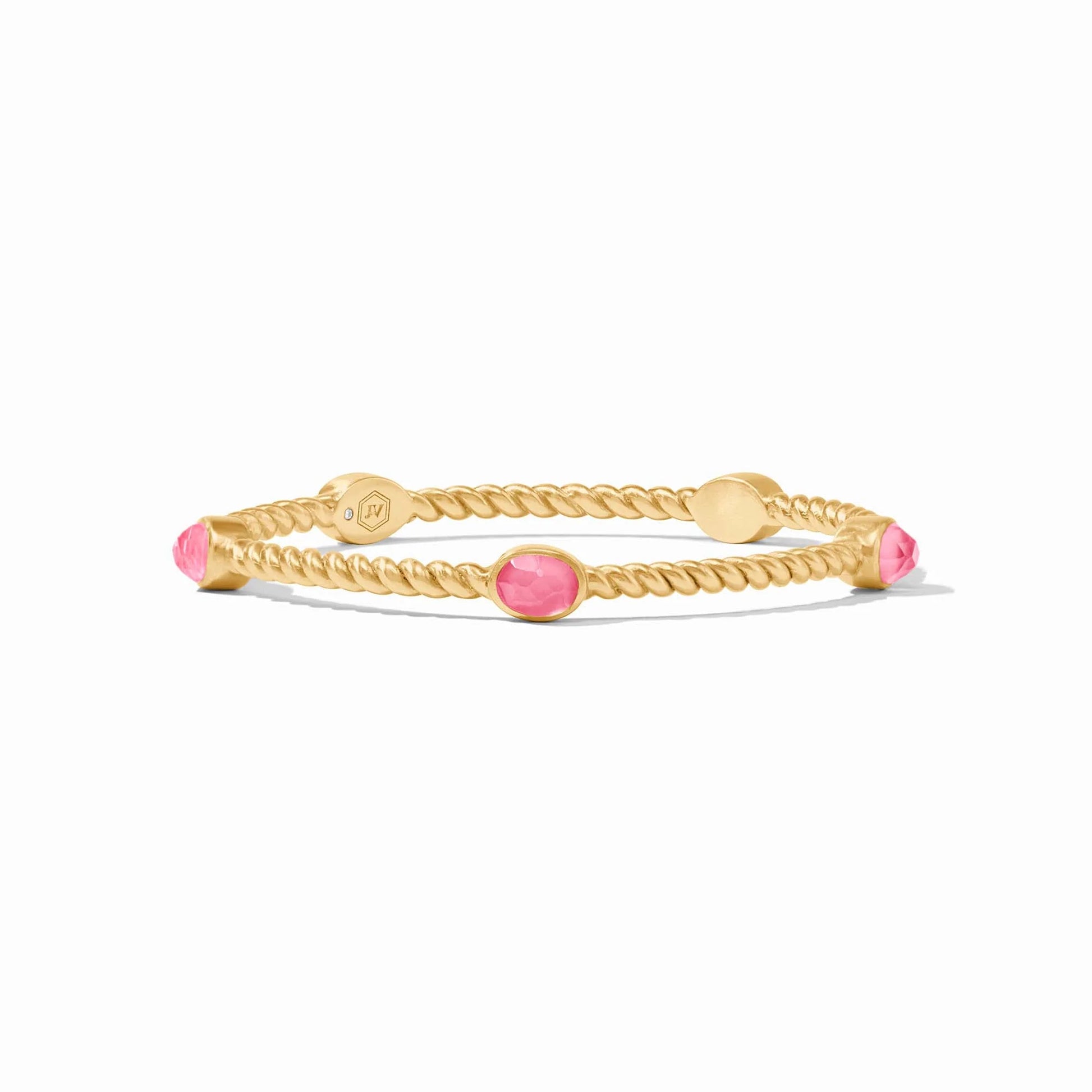 Oval gemstones evenly spaced along a loop of twisted golden rope.