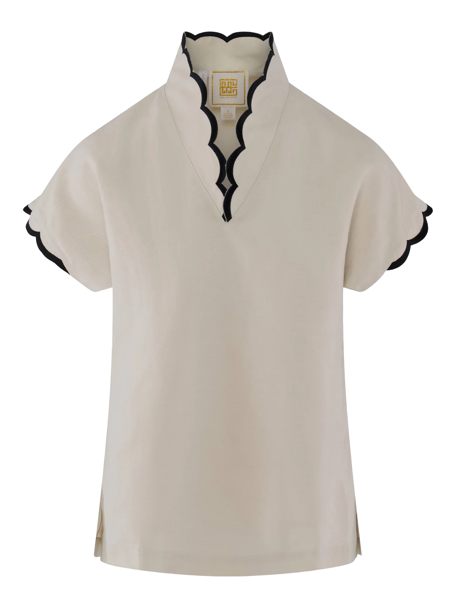 Elevate your everyday summer wardrobe with the Orchid Top in Birch. Designed with a slightly tailored silhouette, this piece features beautifully scalloped cap sleeves and a coordinating scalloped neckline for a feminine finish that feels both refined and playful. Crafted from luxurious, breathable linen, it's the ideal summer staple—lightweight, easy to wear, and endlessly versatile. Pair back with the Paisley Pant in Bellamy Palm for a coastal statement, or create an elevated, everyday look with the Saylor Short in Birch.