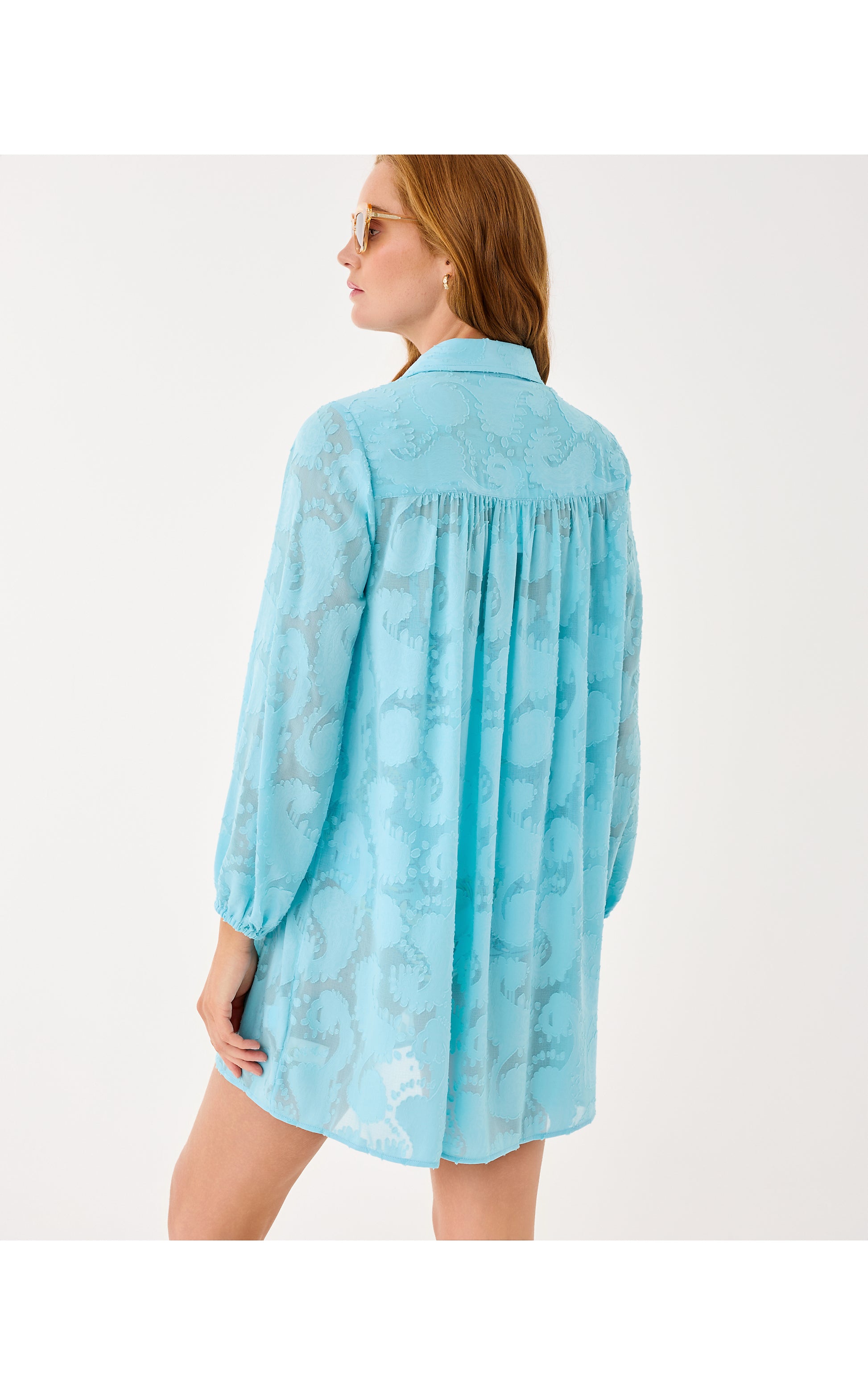 18" Easy Fit, Long Sleeve Coverup, With Collar And Button Front.