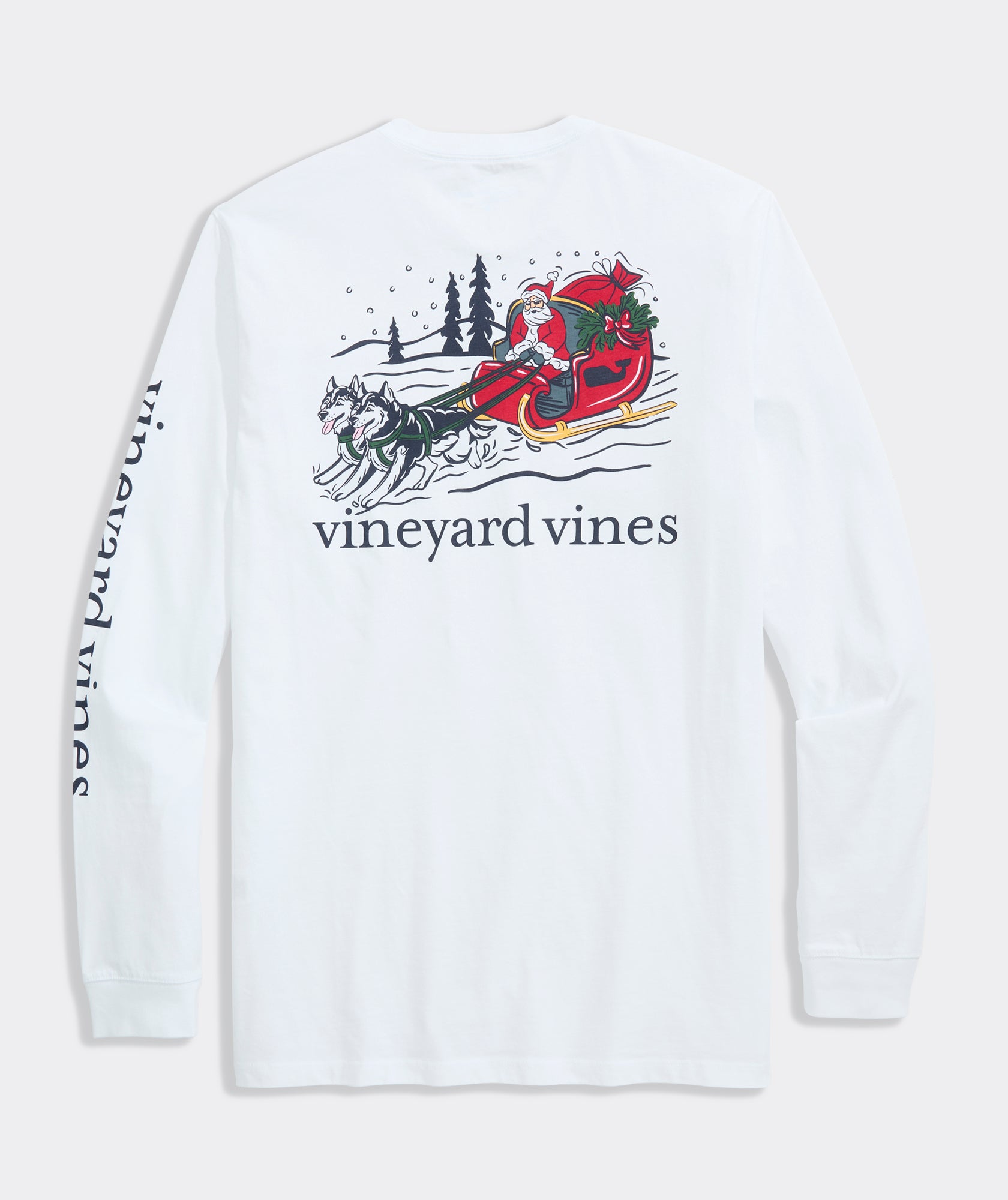 Santa Dog Sleigh Long-Sleeve Pocket Tee