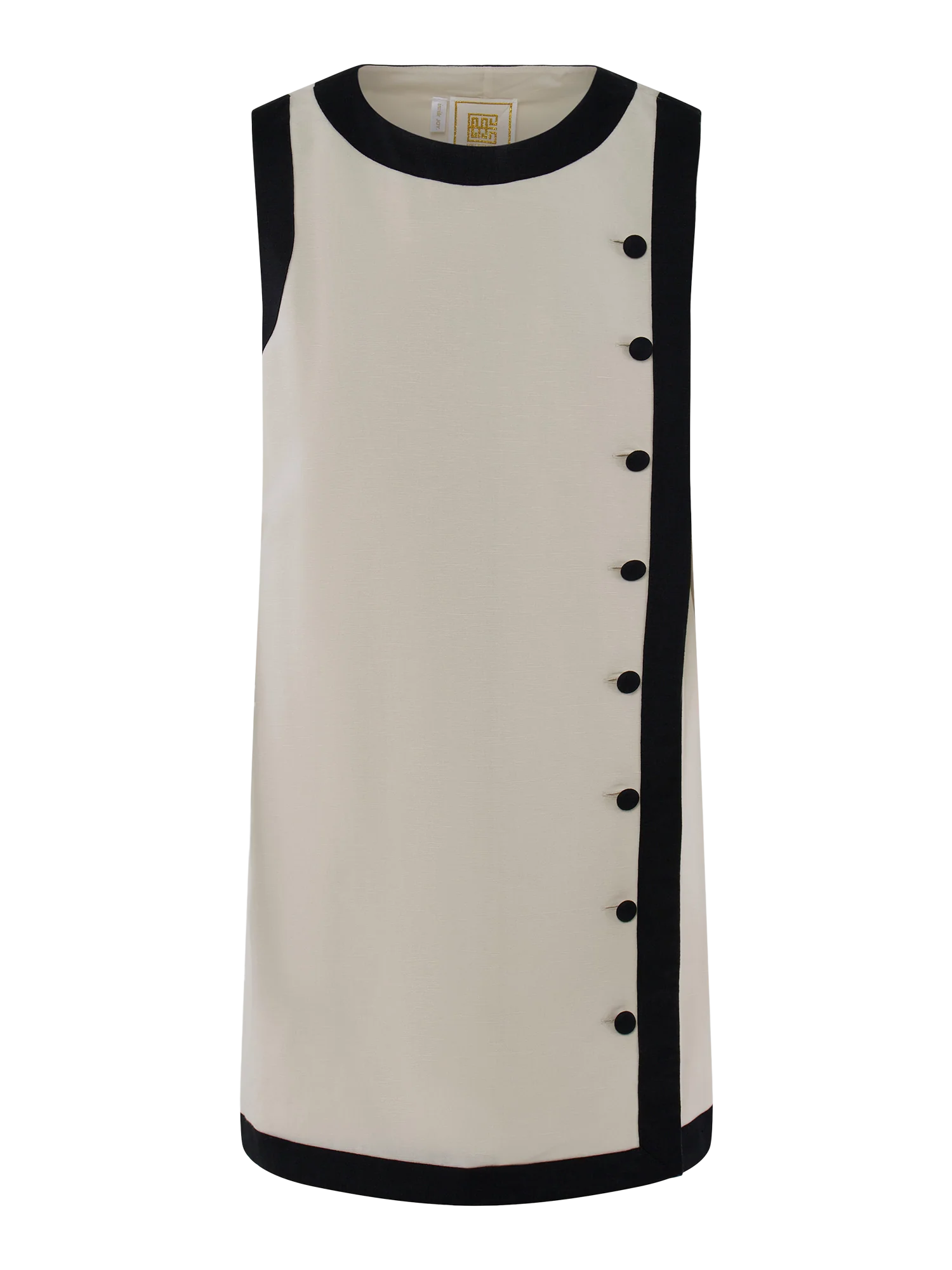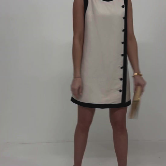 The Tory Tunic Dress in Birch is the wardrobe staple your closet’s been waiting for. Crafted from luxurious linen, this dress showcases a sleek straight silhouette, refined round neckline, and a row of covered buttons that trail down the front side for a touch of polished charm. Framed with contrast trim in classic black and ivory, it’s a neutral go-to that transitions seamlessly from day to night. Dress it down with sandals and sunnies or elevate it with heels and statement jewelry—the styling possibilities are endless!
