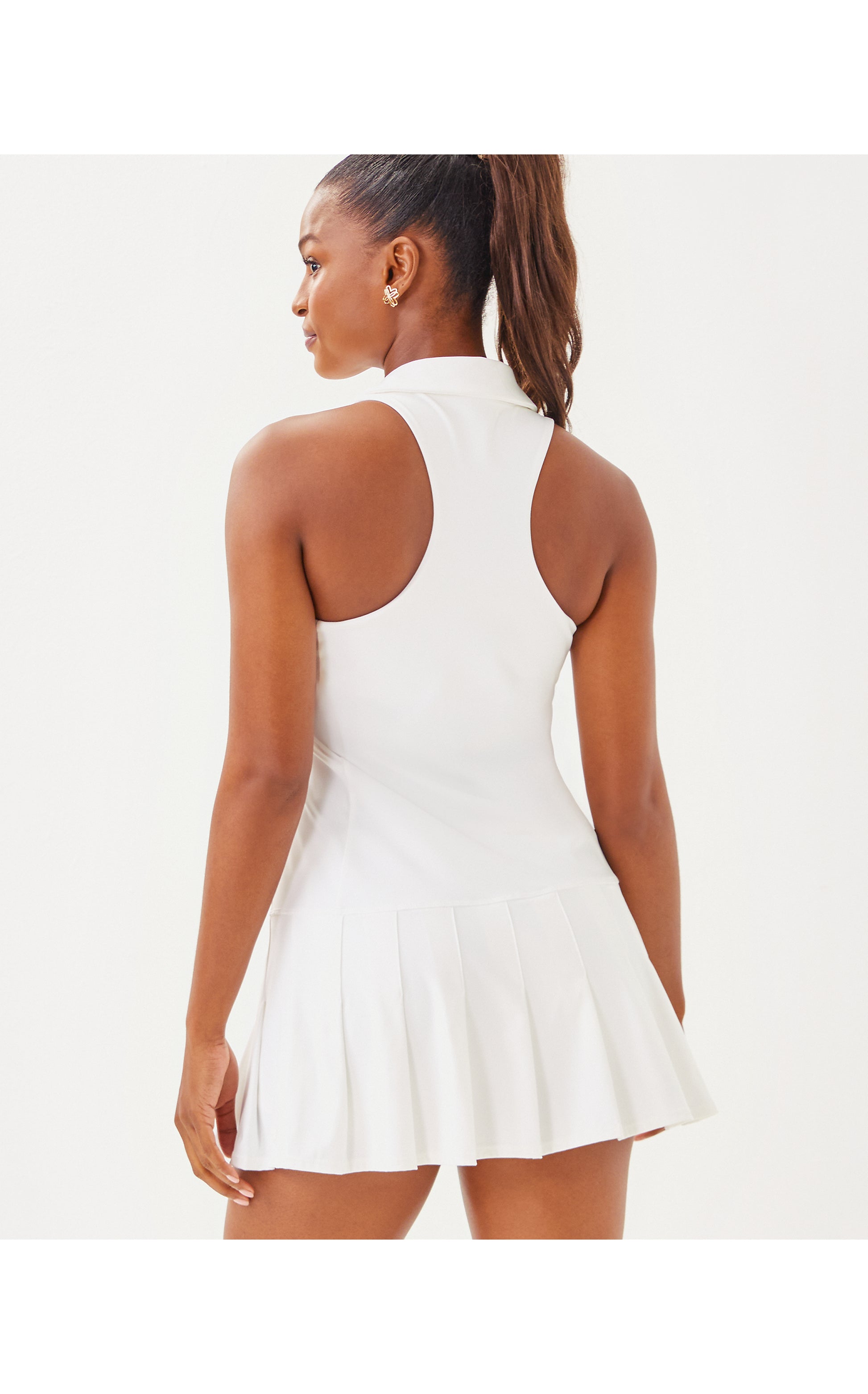 Play in style wearing our bold UPF 50+ Luxletic Dania Pleated Dress.
