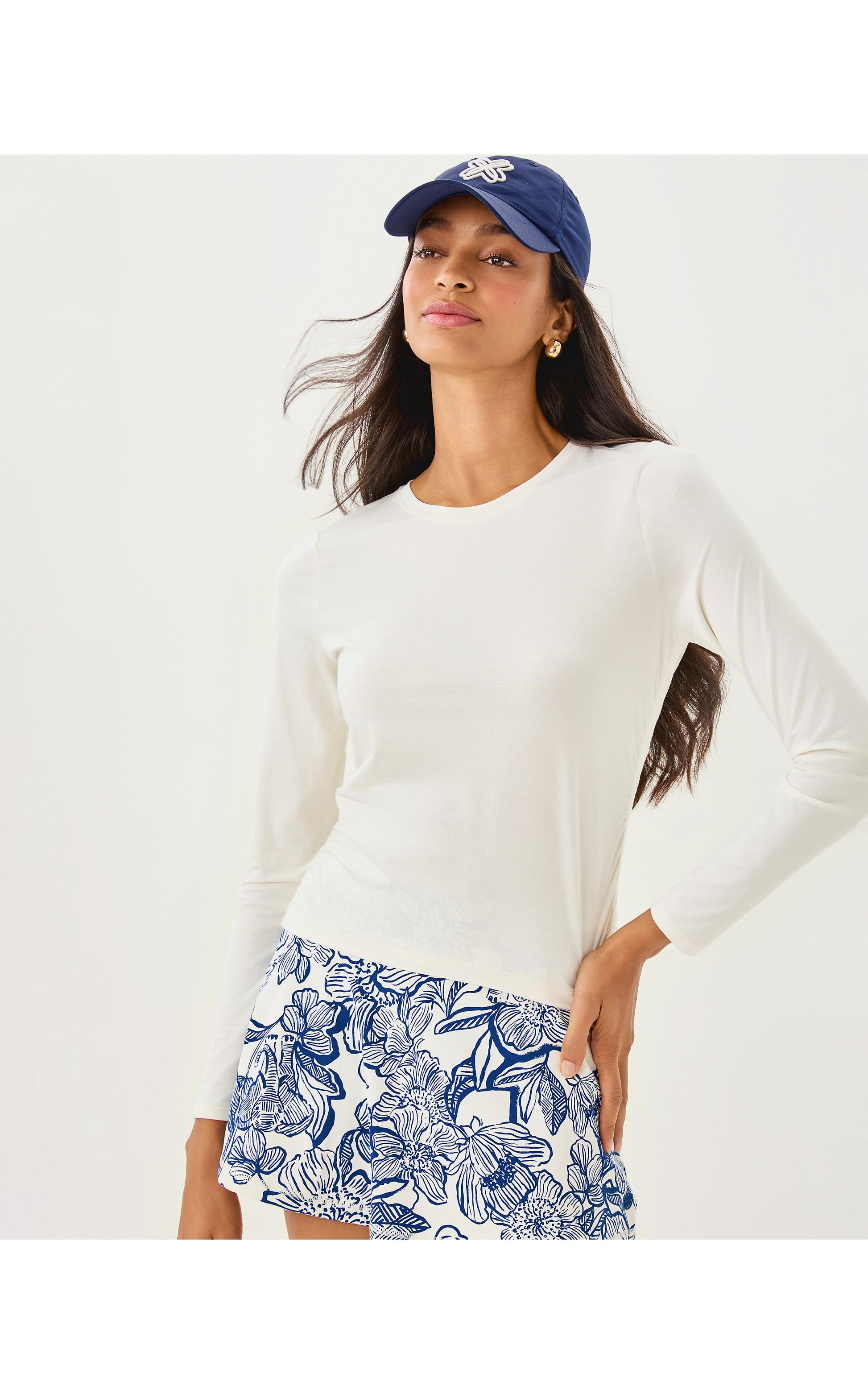 - UPF 50+ Luxletic® scoop neck, long sleeve tee with side shirring detail. Made from partially plant-based fabric with long-lasting stretch.